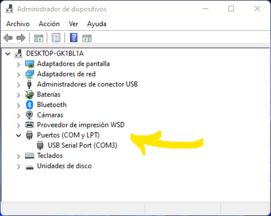 - Acceda al administrador de dispositivos del PC al que está conectado el dispositivo y localice los puertos COM y LPT. En esta sección, podrá encontrar el puerto COM que el PC ha asignado al dispositivo Myruns.