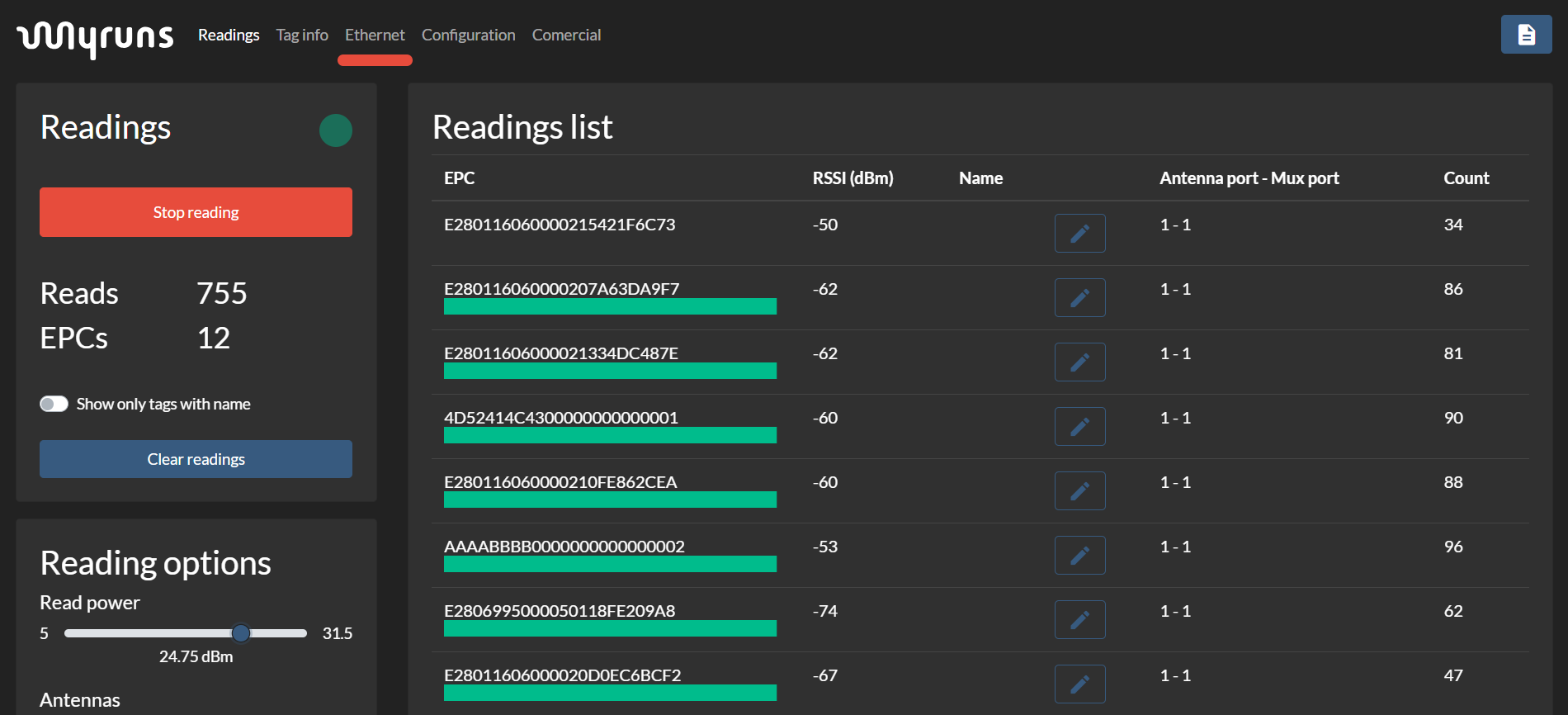 Un lector RFID montado en el techo que integra dos componentes Myruns