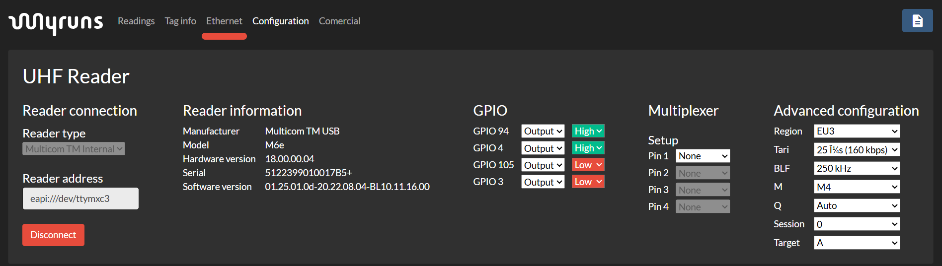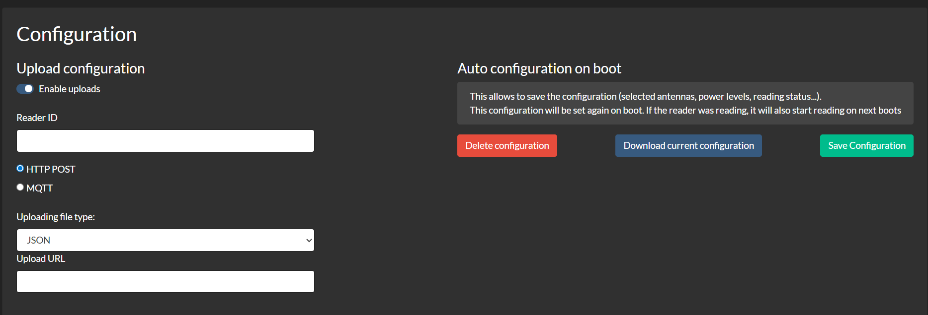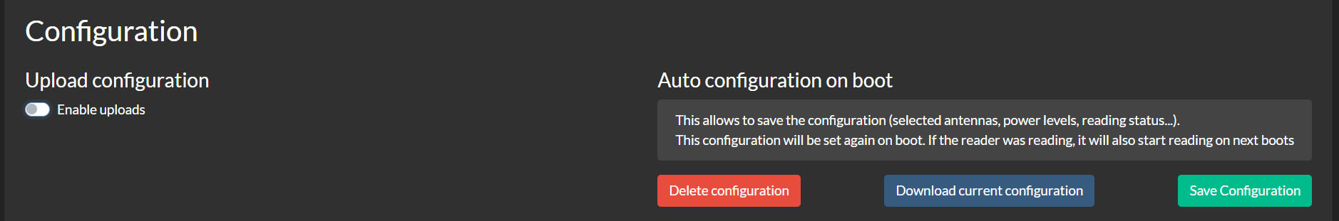 - En la pestaña de configuración, también podemos encontrar el administrador de GPIO y el envío de lecturas.