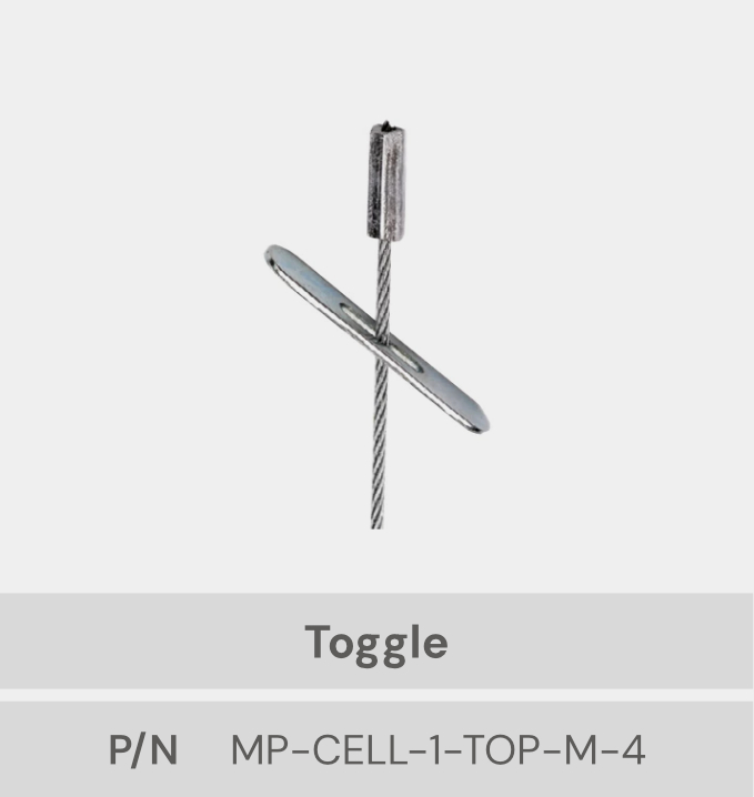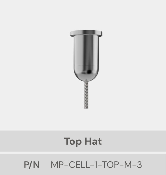 Para la versión suspendida con cables, existen cinco opciones de cables de suspensión que se pueden encajar a los cuatro anclajes del MP Cell 1-Top (las "patas"). El cable no se incluye en el producto. A continuación se muestran las opciones que puede adquirir o que su proveedor o cliente le puede proporcionar: