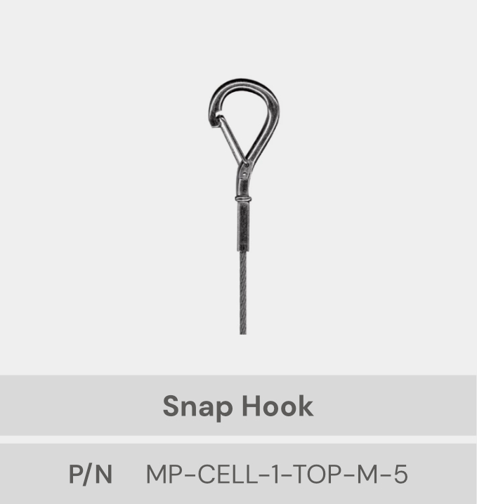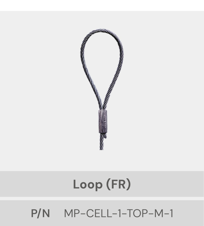 For the cable-suspended version, there are five suspension cable options that can be attached to the four mounting points on the MP Cell 1-Top (the “legs”). The cable is not included with the product. Below are the options you can purchase or that your supplier or customer can provide: