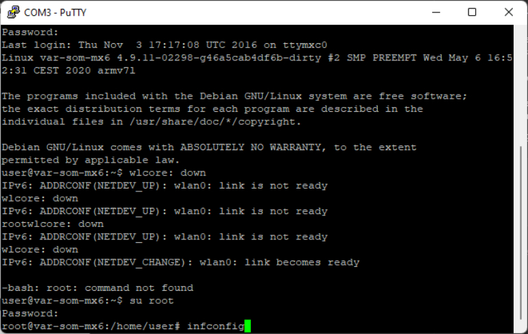 - In the terminal window that opens, press the "Enter" key and then log in with this username and password: user/user
